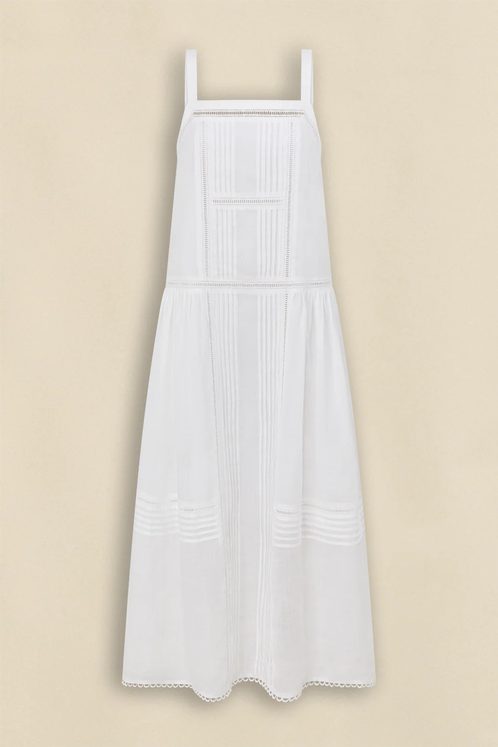 Regular price $369.00Cut in ramie with a colour-matched lining, the altitude dress offers a relaxed and effortless aesthetic. a squared neckline is framed with delicate ladder lace, while the gathered skirt adds movement. porcelain lends timeless ease to this flattering silhouette.