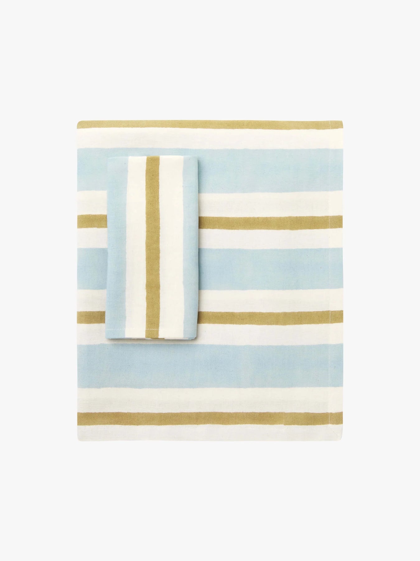 Regular price $255.00Our Jardin collection features a painterly stripe pattern in alternating Sky, Chalk, and Pear hues. Hand-block printed on a tactile cotton linen blend, each piece is meticulously handcrafted by highly skilled artisans in Jaipur.